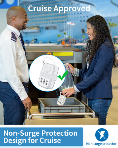 - [CRUISE MUST HAVES]: The non-surge protector, cube shaped power strip comes with 4 outlets / 3 USB ports and it is in perfect size that fits right in the palm of your hand. Great for frequent traveler cruise ships, hotels, home where there are few unreachable outlets