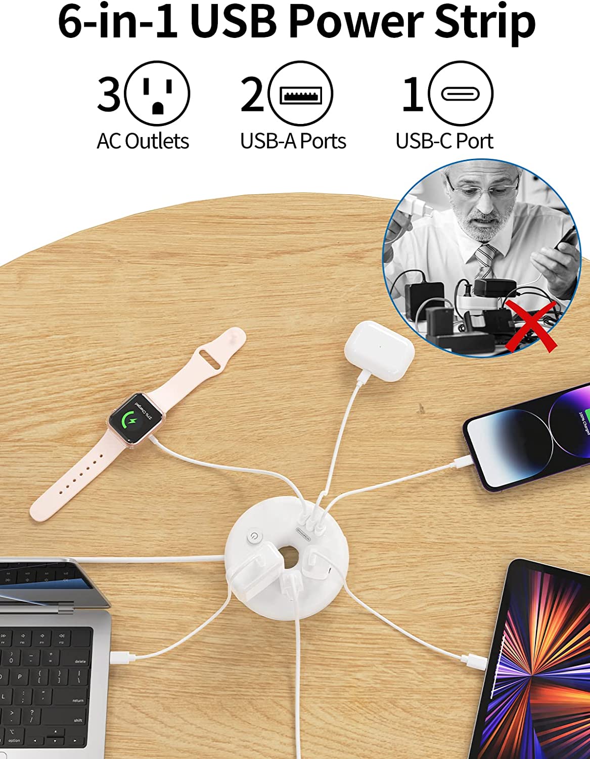 Ntonpower New i-Donut Power Strip 3 Outlets 2 USB-A 1 Type C